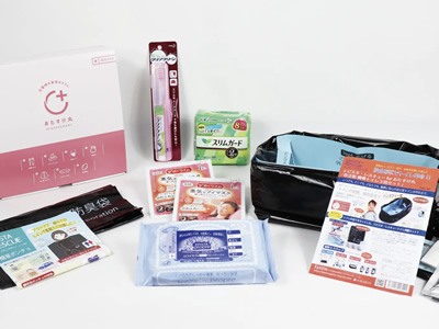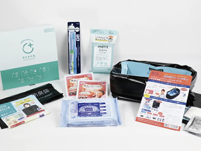 ・エピスタプロプルやさしいウェットティッシュ ピロータイプ 30枚入り ・エピスタ・レスキューおたすけ丸仕様(トイレ3回分) ・非常用簡易ポンチョ 1枚 ・防臭袋 1枚 ・歯ブラシセット クリアクリーン 携帯用スリムケース 1個 ・めぐりズム蒸気でホットアイマスク 無香料 2枚 ・メリットDAY+ ドライシャンプーシート 12枚入り |